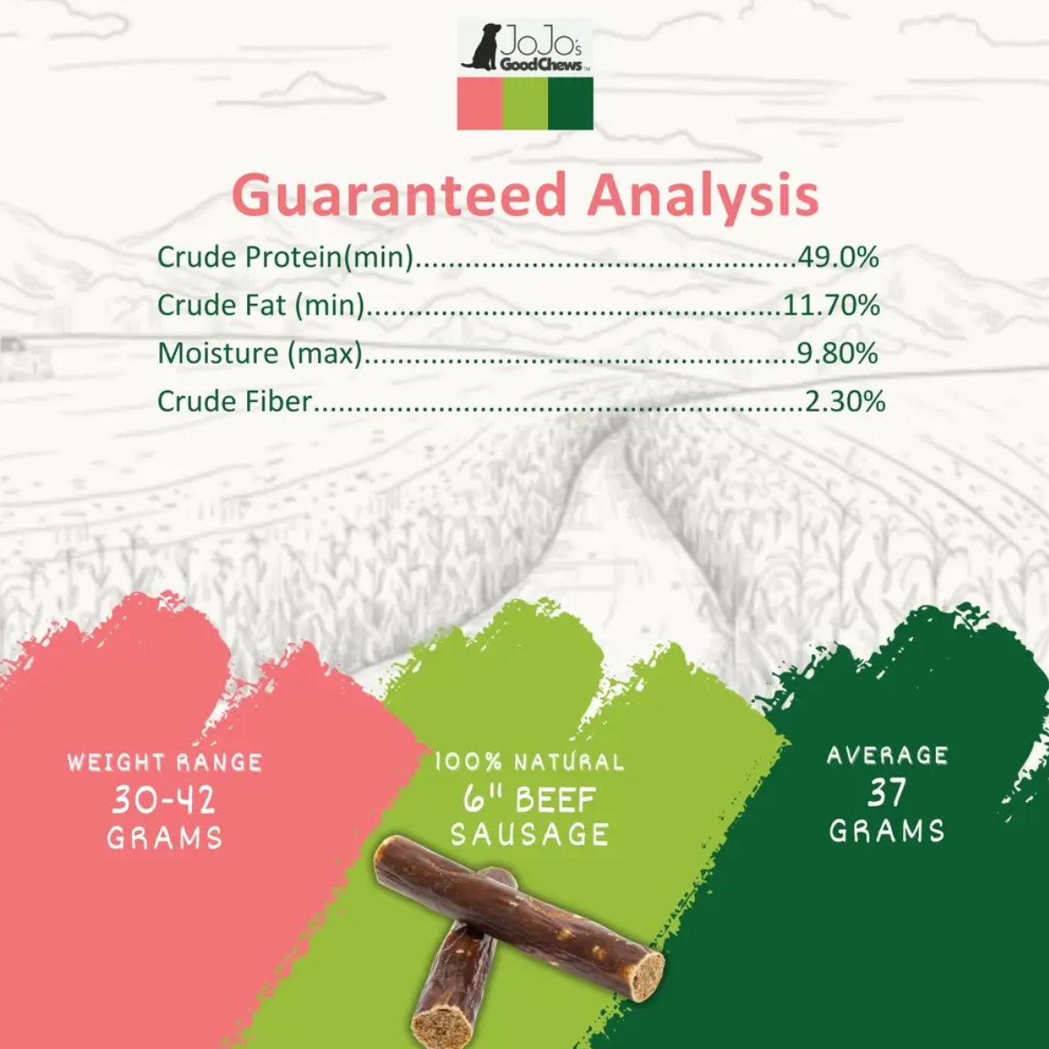 All-Natural Beef Sausage Dog Treats – Premium Chews Packed with Protein & Nutrients – 6 Inches (25/Case)