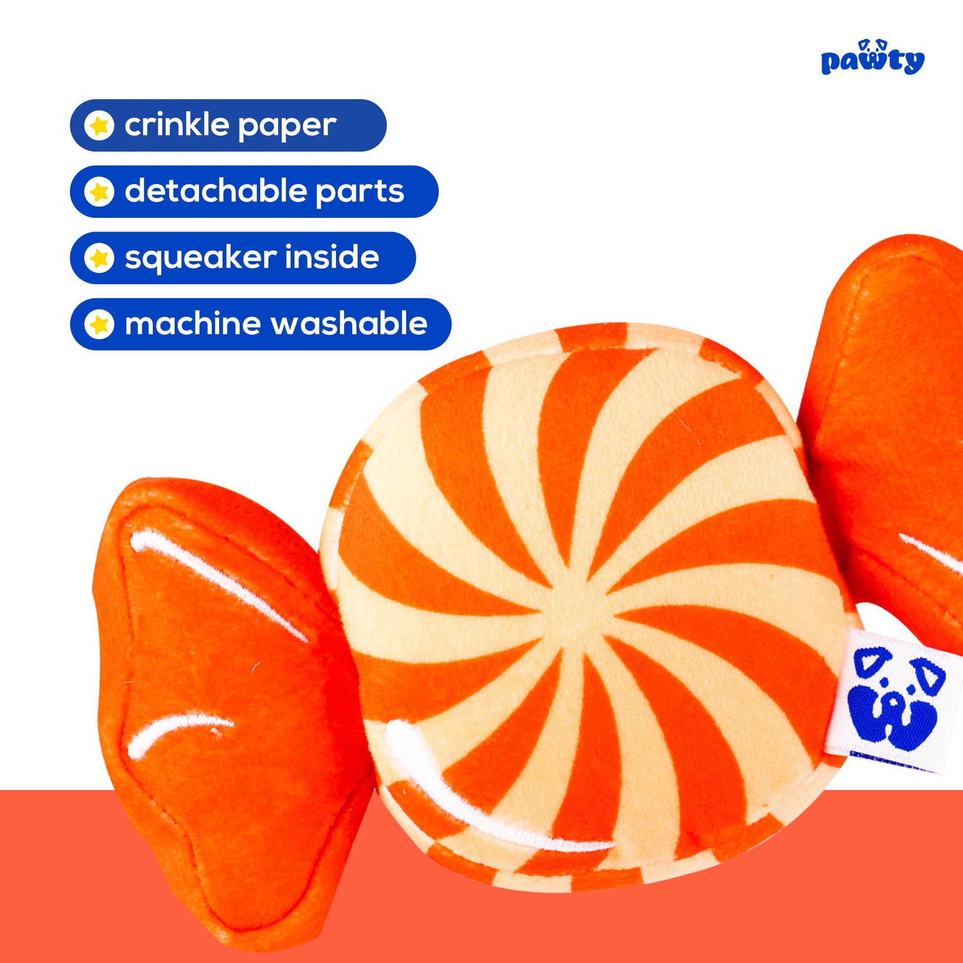 Make playtime with your pup even cuter and sweeter! The Pawty Toys Candy takes dog toys to a whole new level. With its unique and adorable design, it features detachable parts to hide treats, plus crinkle paper and a squeaker for added excitement and mental enrichment. This plush toy is ideal for small to medium dogs and makes a great gift for birthdays or any special occasion.