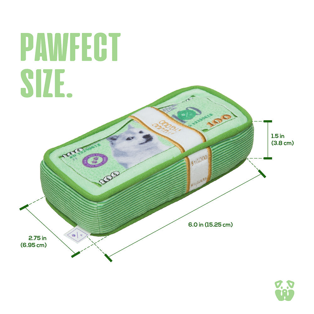 Let your dog buy their own snacks and toys for once.. this stack of cash-shaped plush toy brings a whole new meaning to the phrase “making money.” Soft yet durable, it’s perfect for tossing, chewing, and cuddling, giving your dog hours of plush play fun!