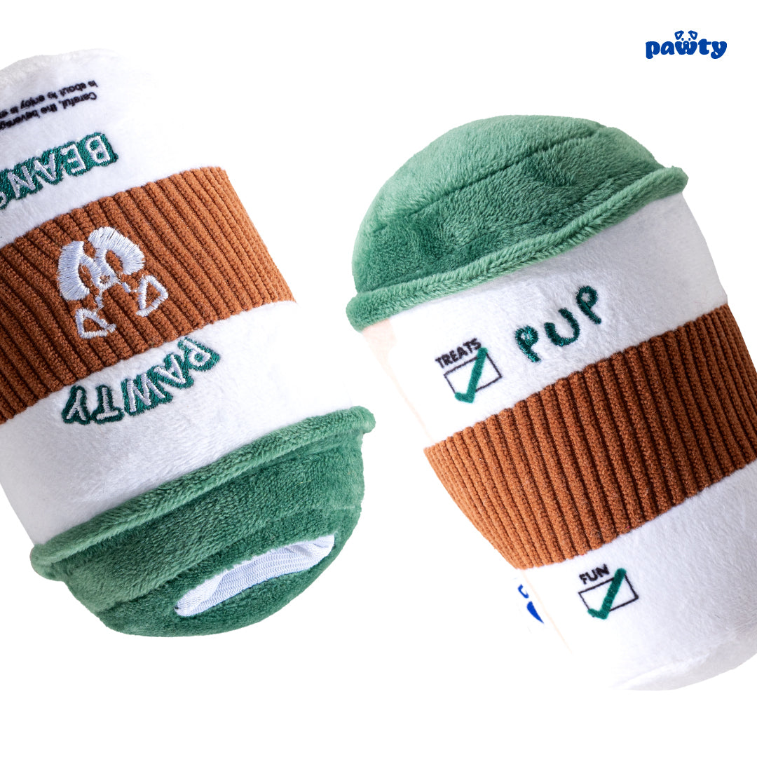 Make your pup's playtime as cozy as your morning coffee with the PAWTY Coffee Dog Toy! This interactive plush snuffle enrichment toy is designed to keep your small to medium-sized puppy entertained for hours. Featuring a fun and cute coffee cup design, it’s made from durable, chew-resistant materials and includes a squeaker for added excitement. Perfect as a birthday gift or just a fun treat, this toy is sure to keep your furry friend engaged and mentally stimulated!
