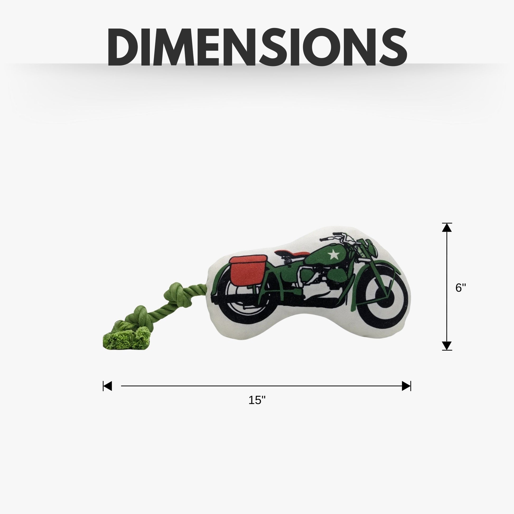 - Vintage Style: Inspired by WW2 army surplus, this motorcycle toy features unique graphics and tough canvas that your pup will love, making playtime a stylish adventure.
