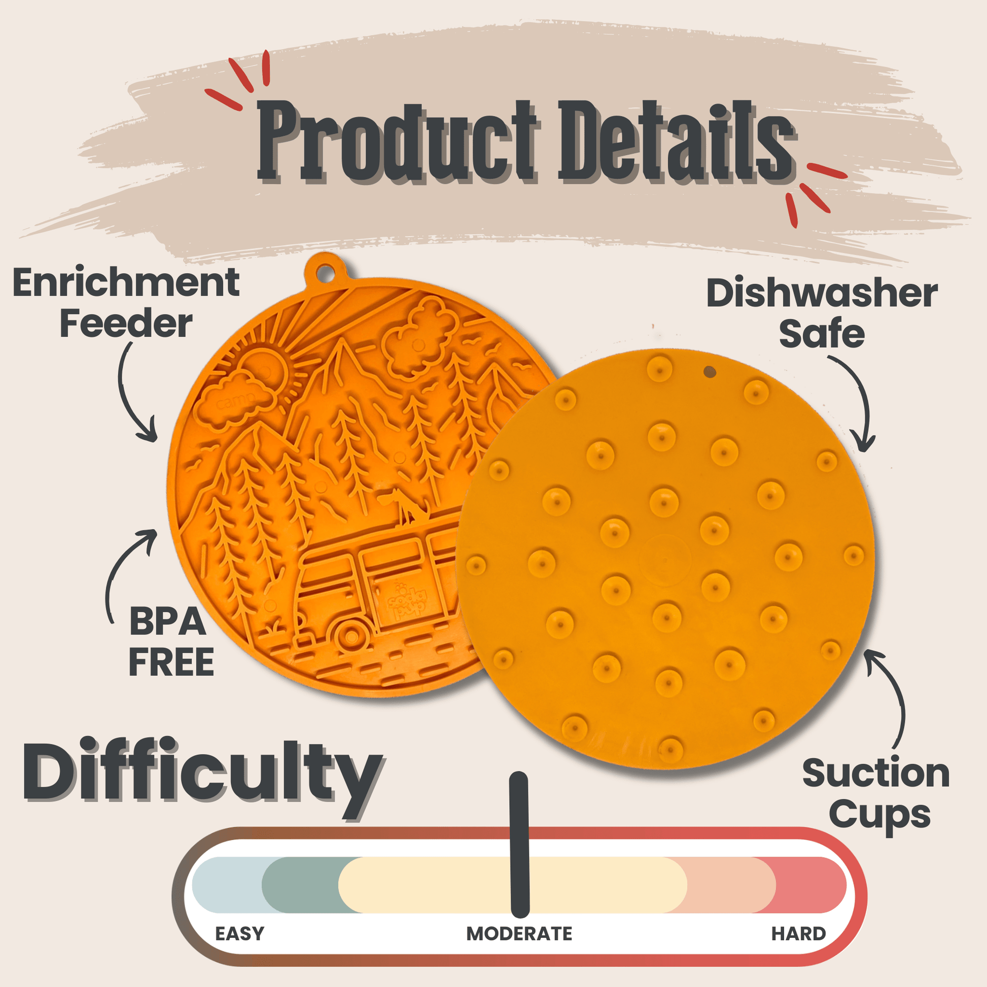 This dog lick mat is made of SodaPup®'s proprietary rubber material and is durable, low-maintenance and pet-safe. Free of BPA or phthalates. Vet-approved.