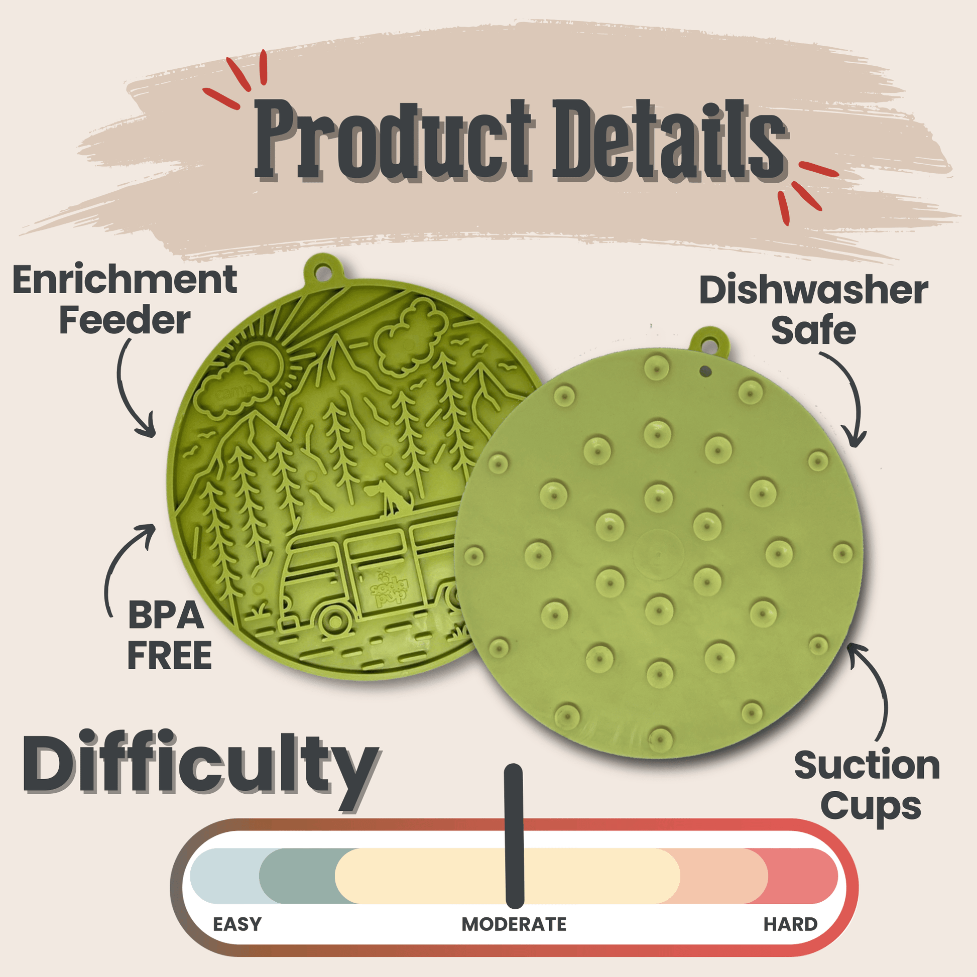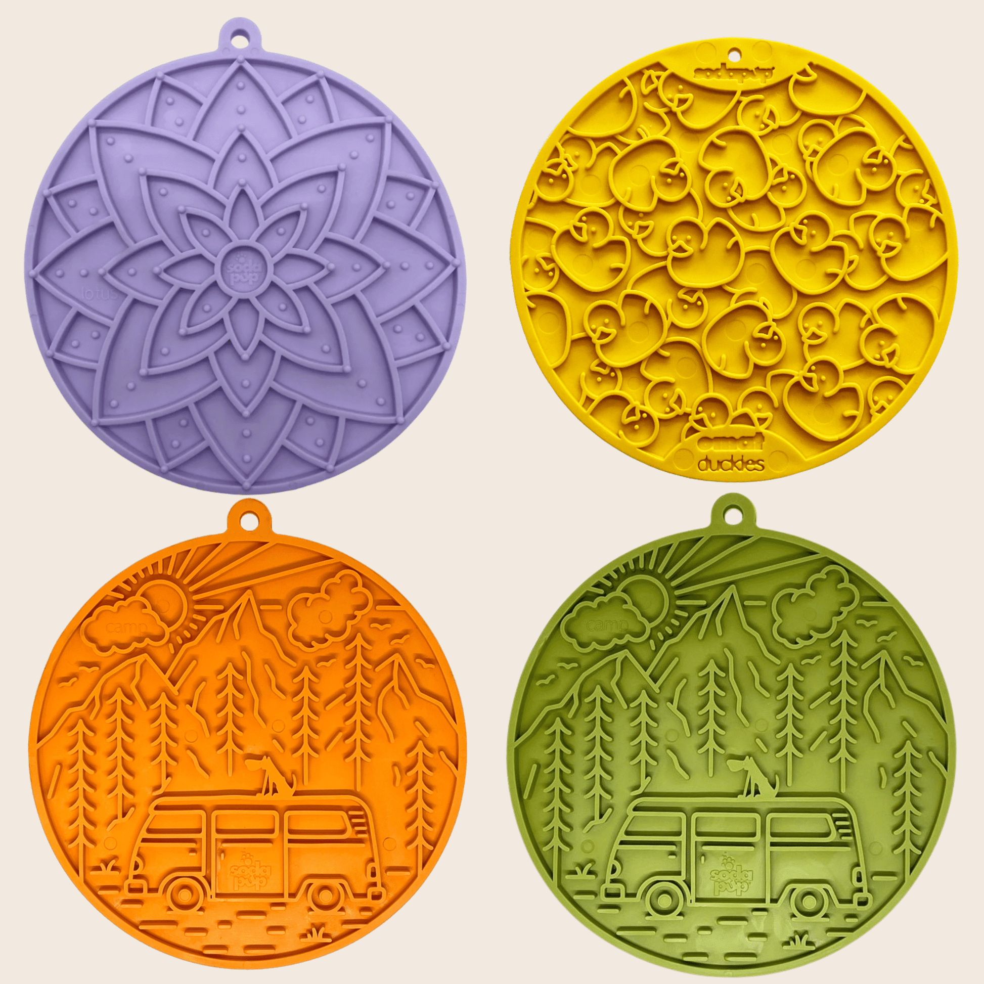 Sodapup licking mats are dishwasher-safe (top rack only). For handwashing, soak in warm, soapy water and use a brush to remove food residue.