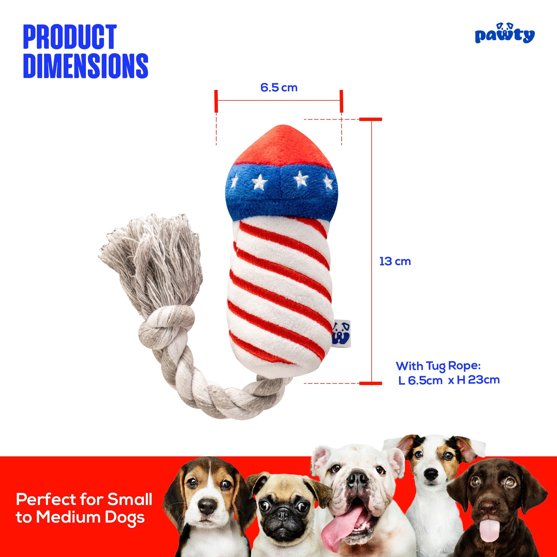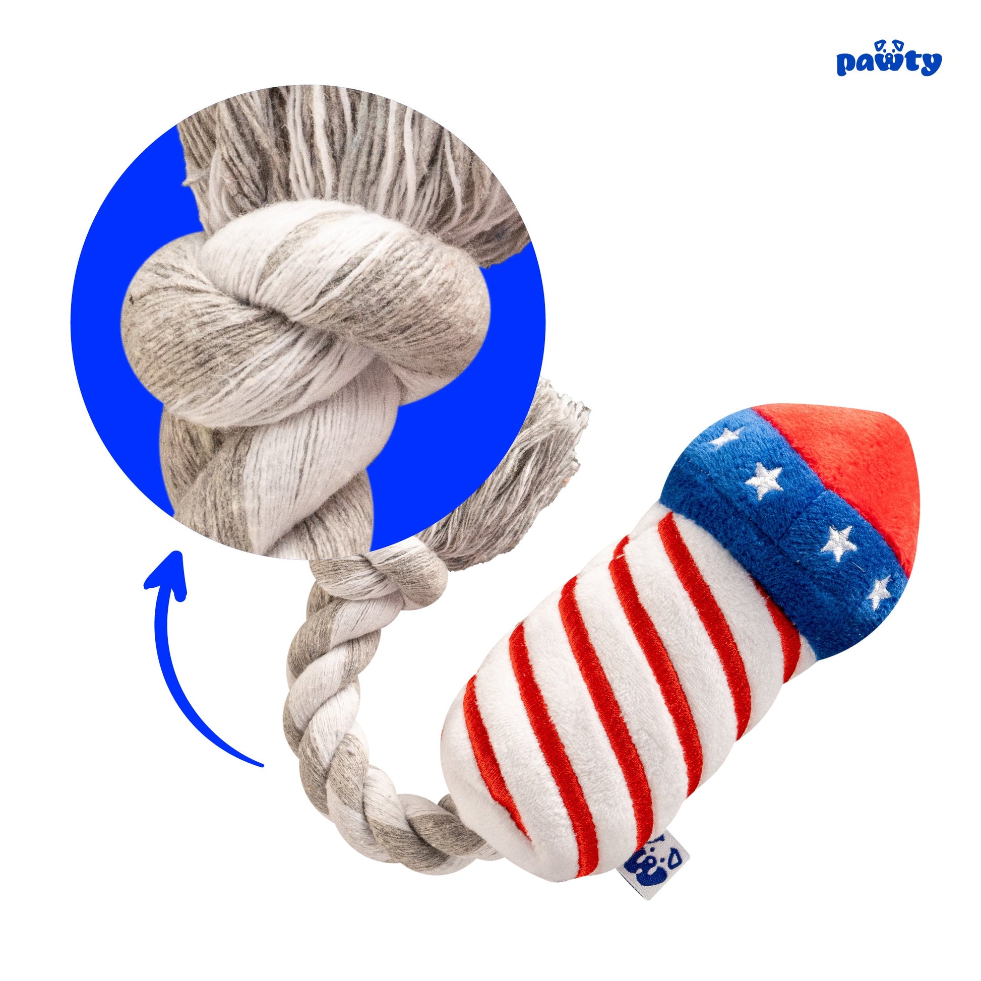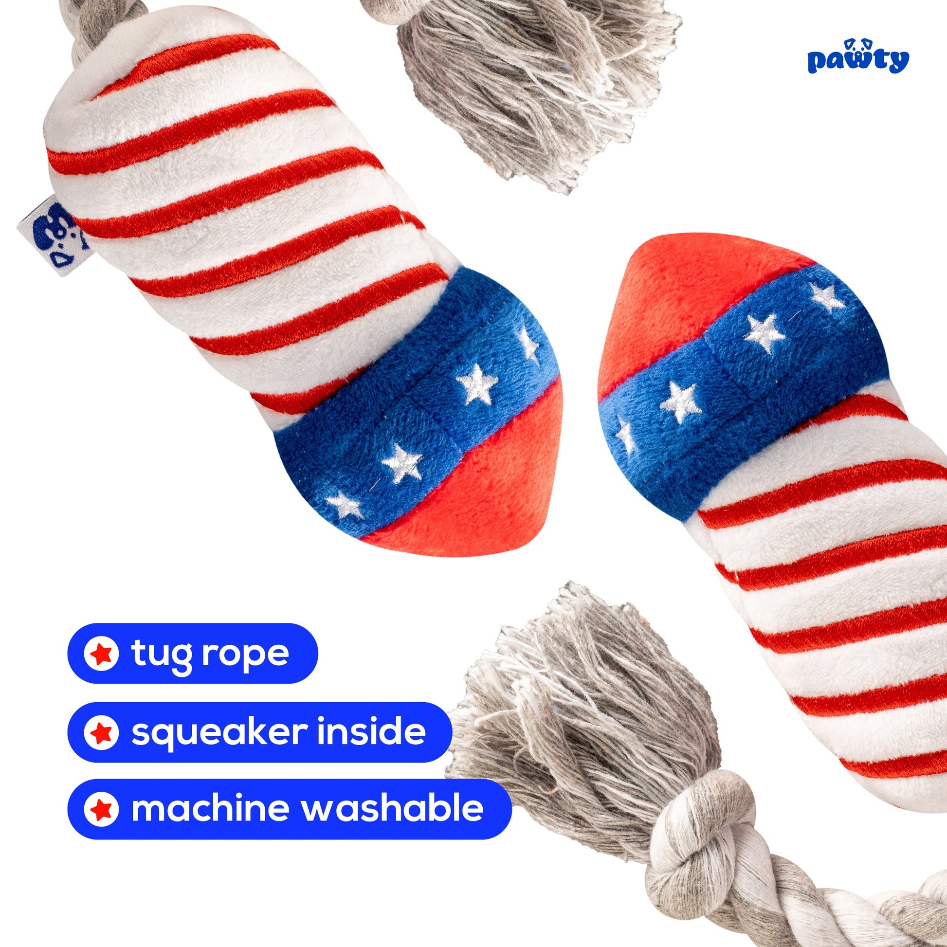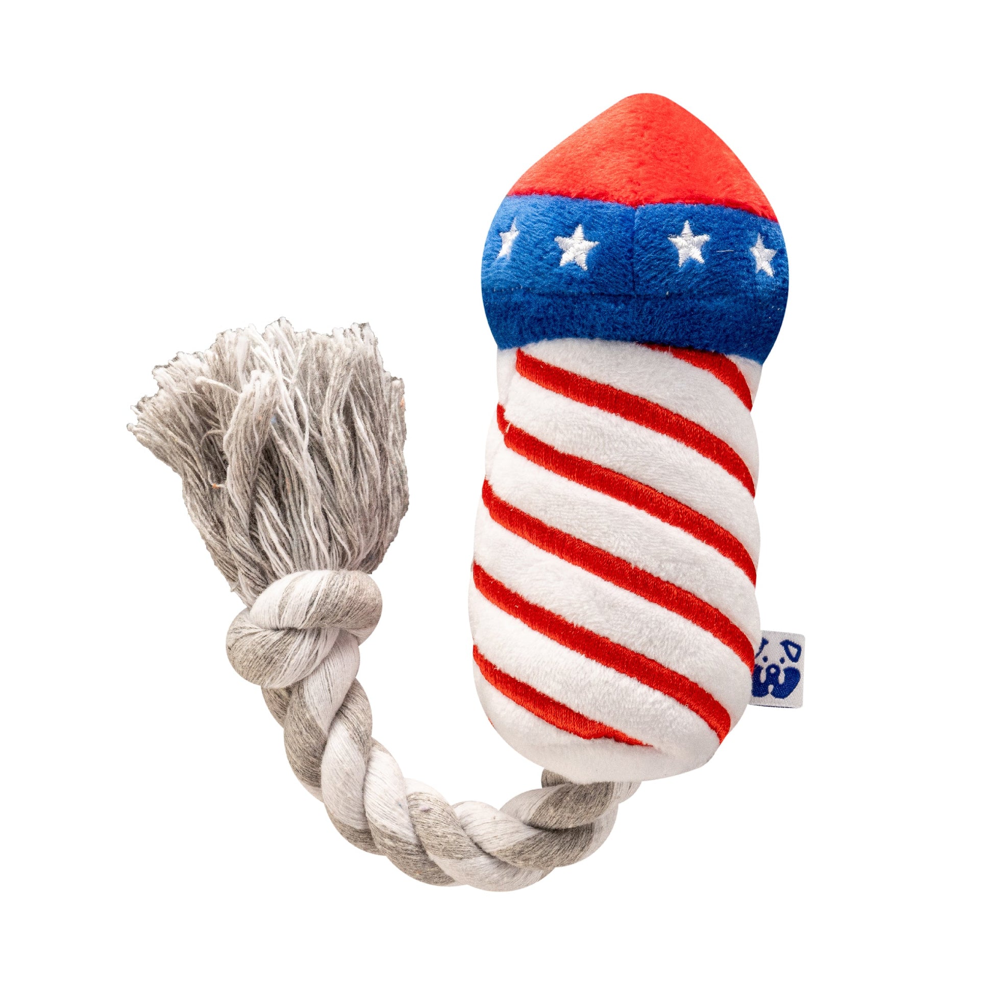 Celebrate the spirit of the Fourth of July with PAWTY Fireworks! Designed with patriotic pride, this toy includes a flag-themed design and a firecracker squeaker to add excitement to every play session. Crafted from premium, durable materials, it’s the perfect gift for any occasion, letting your pet enjoy playtime with a dash of national pride!