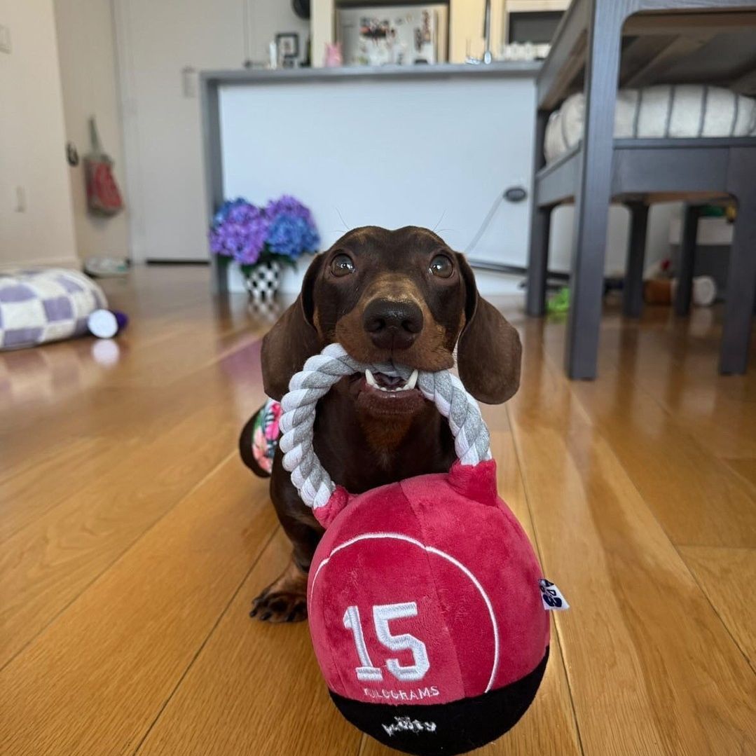 Strength meets fun with the Kettlebell! This unique kettlebell-shaped toy is ideal for a game of tug-of-war. With a durable design and easy-to-grip handle, it's perfect for dogs who love interactive play and gives them a good mental and physical workout!