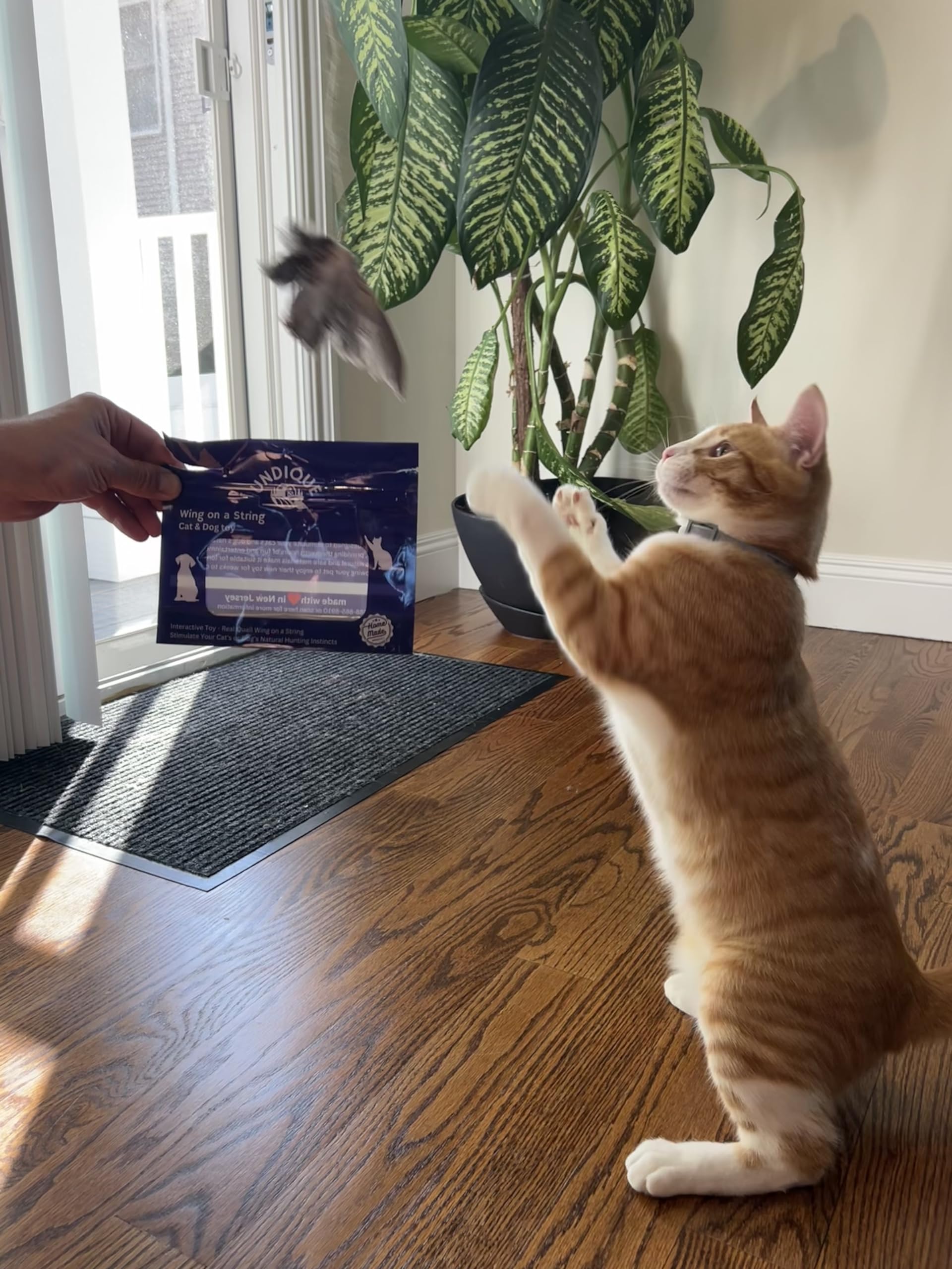 - Enhance your cat's playtime with a real bird cat toy. This wing on string features authentic quail training wings, crafted from organic quail wings, ensuring an engaging experience for your feline.